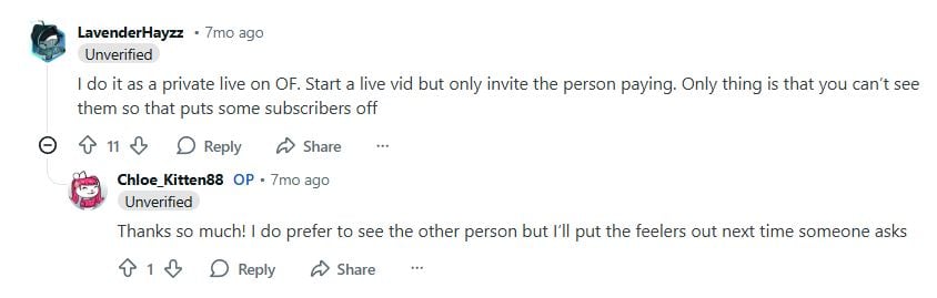 Video calls are the ultimate high-ticket interaction. In this format, you aren’t just selling content — you’re selling your time, undivided attention, and presence. The per-minute rate can be dozens of times higher than a monthly sub, and the brand loyalty it builds can keep a fan with you for years.