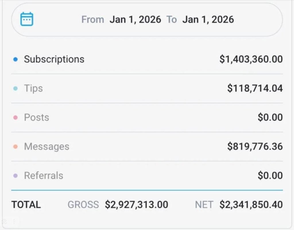 OnlyFans is a massive ecosystem with over 4.6 million creators and 377.5 million registered users worldwide. However, the wealth distribution is heavily skewed. Our internal data confirms that the top tier of OnlyFans models captures the lion’s share of the revenue. The top 1% of creators earn an average of $49,000 per year, while the elite performers bring in millions of dollars annually after the platform’s commission.