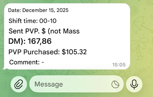 - Work one shift as a sexter. You must clearly understand the process from the inside: how a dialogue is built, when to offer PPV, how to handle objections. Otherwise, you’ll never realize that the sexter is weak, and they’ll be able to fool you.