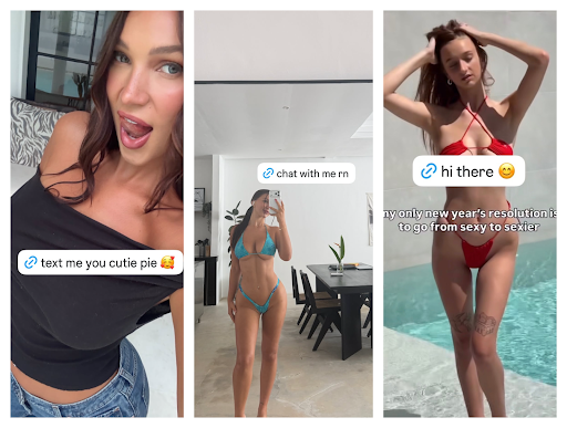 • An intriguing photo with a call to action or the beginning of an intimate video redirecting to OnlyFans;