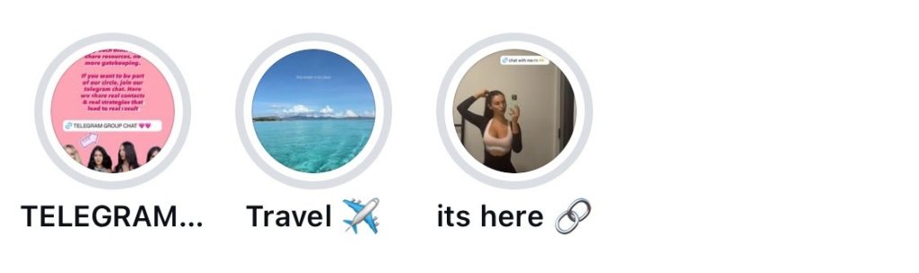 Story Highlights. Your first and main highlight should be «onlyfan$» (changing the letter «s» to a dollar sign to bypass blocking). Inside — 3-5 of your most beautiful and high-quality stories (e.g., beautiful selfies, photos in a swimsuit, aesthetic shots). On each story in this highlight, add a caption and a link like: «Click to get to know me better».