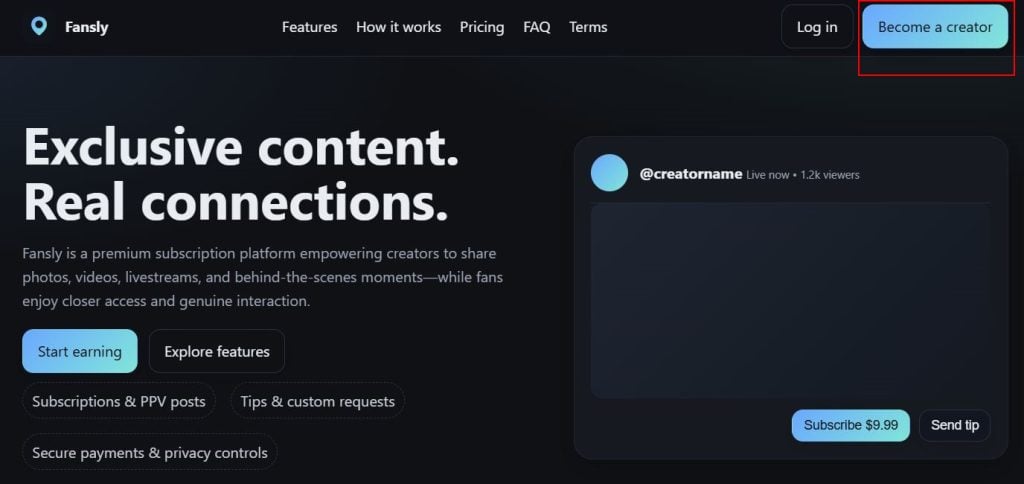 Fansly. A platform that operates on the same subscription and pay-per-view (PPV) model, but is often considered more loyal to content creators. The site has a flexible subscription system: you can create multiple access levels on a single profile with different content rules. This allows you to offer cheap entry and upsell premium fans.