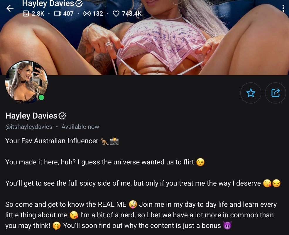 Hayley Davies on the realities of the platform: to earn six figures a month, you have to be prepared to work 80+ hours a week. Filming, editing, endless messaging, and promotion — this is not a hobby, but hard work with no days off. But to earn $1,000-3,000 a month, you don’t usually need to work such excessive hours.