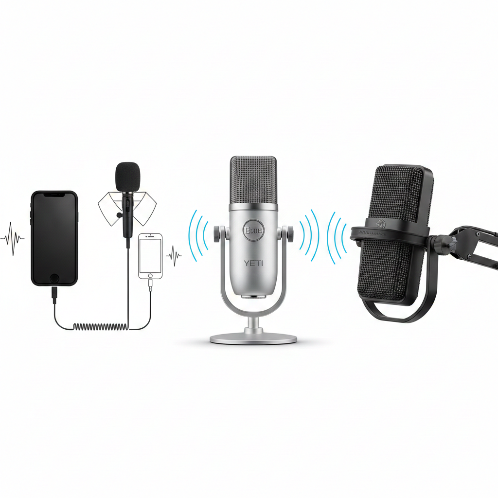 Microphone. To start, the one built into your phone will work, but if the sound is bad, add a lavalier microphone that plugs into your headphone jack.
