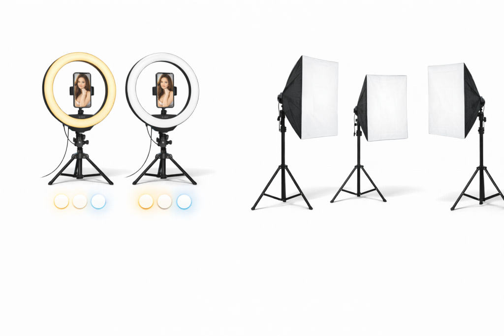 A free alternative is natural light from a window, but this only works during the day and depends on the weather. But if your income is growing, get a Softbox kit with two or three light sources for professional lighting.
