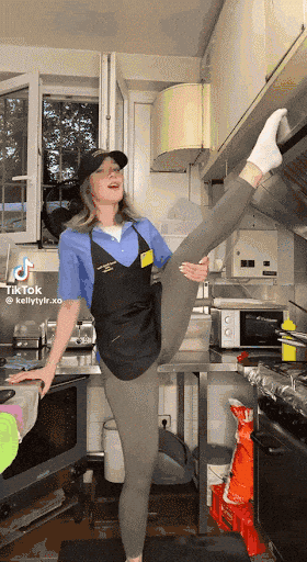 Stretching at the bar after long standing on feet — a demonstration of sexuality in mundane work environment