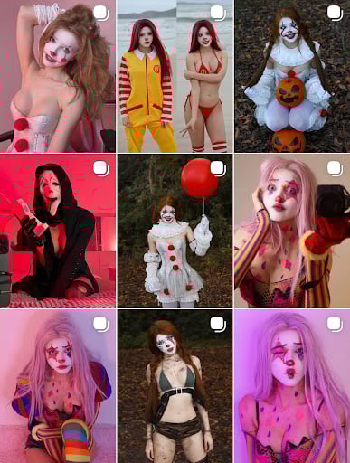 The girl has a clown account and creates memorable images in this aesthetic.