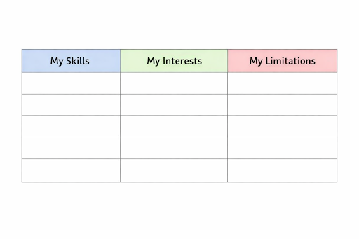 To identify a niche, create a table with 3 columns: My Skills, My Interests and My Limitations. Highlight the crossings to identify potential niches.