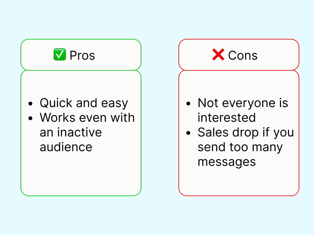 Mass messages work better when they are not perceived as spam. You need to gradually warm up your audience through a series of messages.
