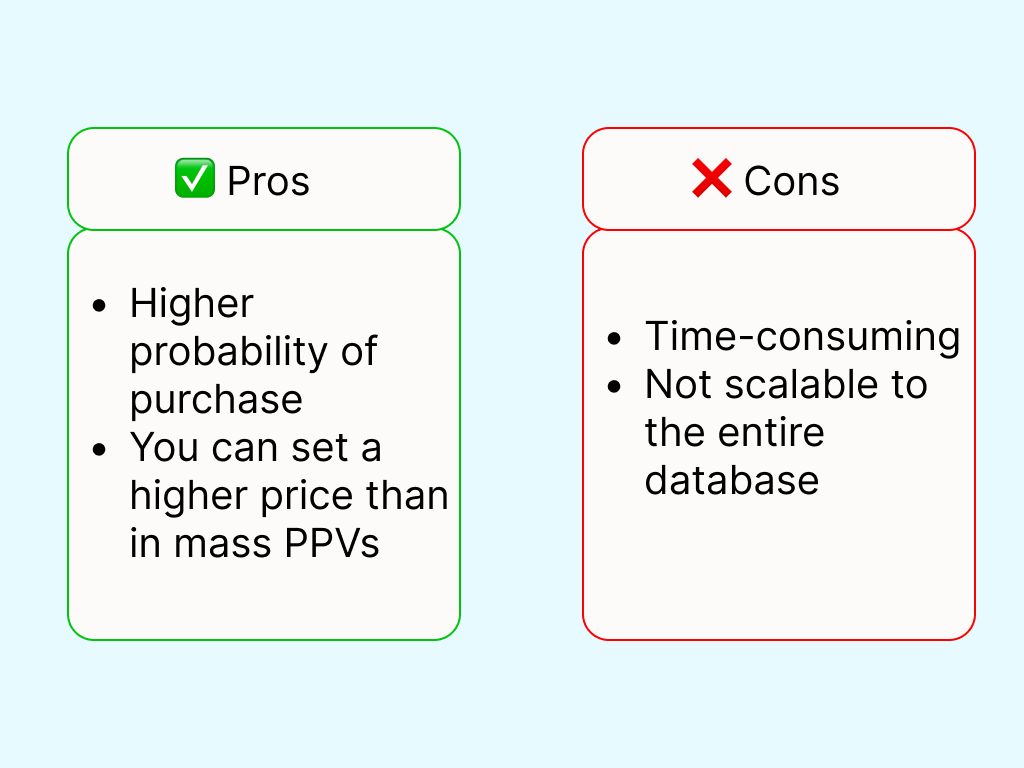 2. Individual PPV. Content is sent to a specific subscriber, without a long dialogue, but with a sense of personal attention.
