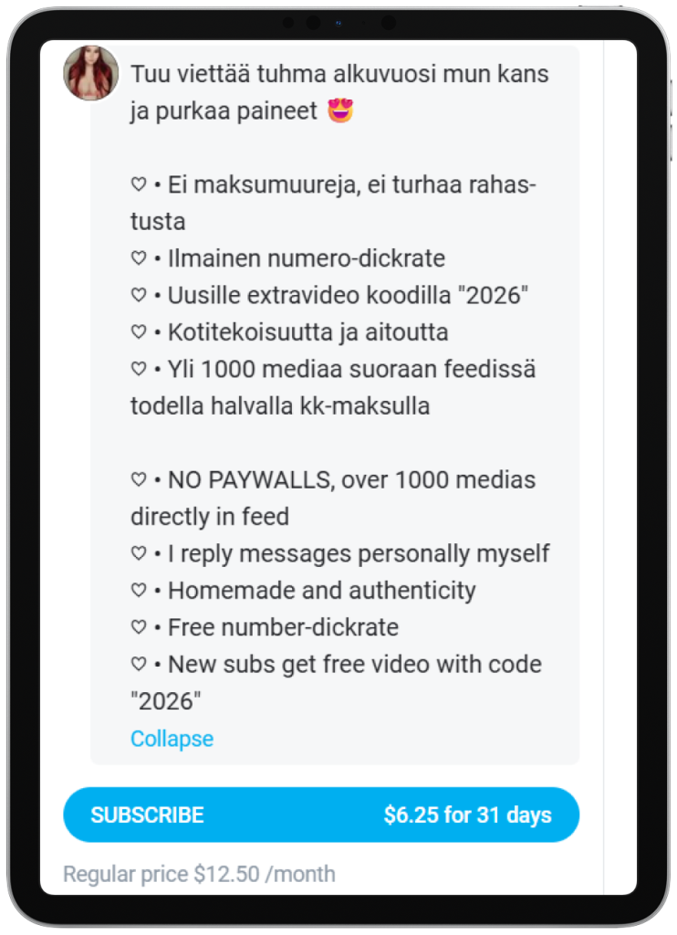 An OnlyFans subscription gives models a stable monthly income from fans who pay for exclusive content. This is the main monetization tool: the model sets the price themselves from $4.99 to $49.99 per month, and the platform takes a 20% commission. Fans get access to photos, videos, and posts that are not publicly available, which creates a sense of exclusivity and loyalty. For the model, the subscription forms the core audience, which is easier to work with further.