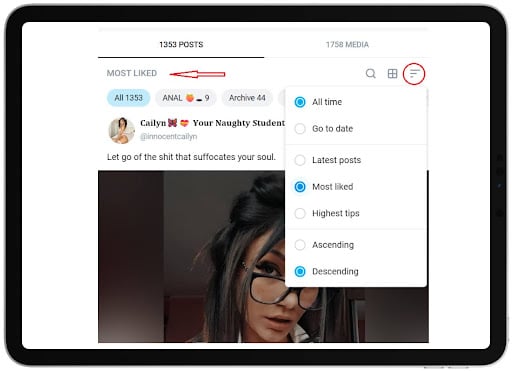 In the model’s profile, you can see the most liked posts and get inspired by the topics