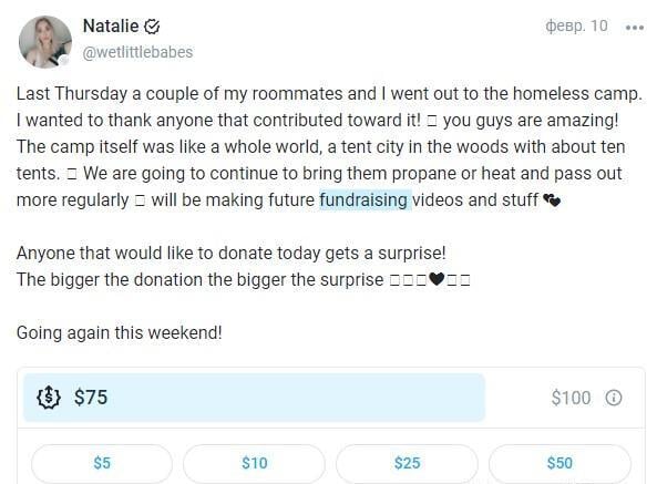 Set a goal for something tangible (new underwear, equipment, a trip). This makes fans’ spending justified. Update the fundraising status regularly. Seeing that only 10-20% of the goal remains, fans are more willing to throw in the rest. Promise to publish an exclusive post or stream for all subscribers as soon as the goal is reached. This motivates the audience to encourage each other.