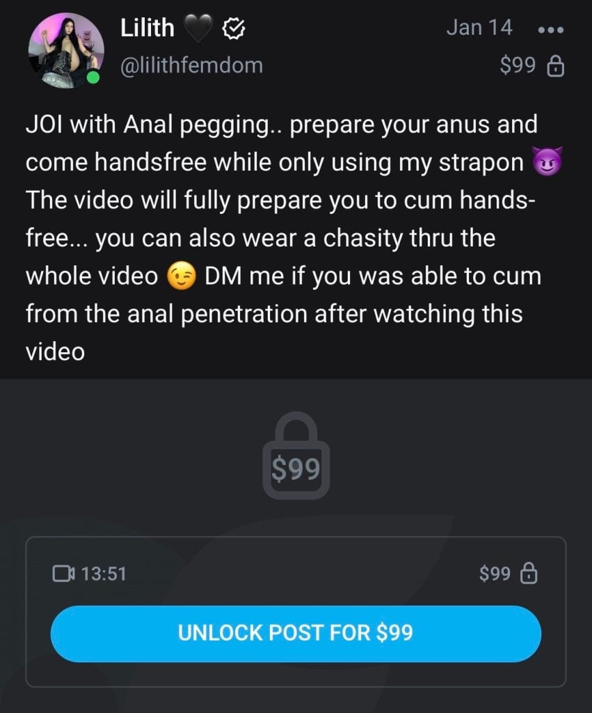 Viewers value JOI for the illusion of closeness. And for the model, this format is also convenient: you can record one video and sell it as PPV